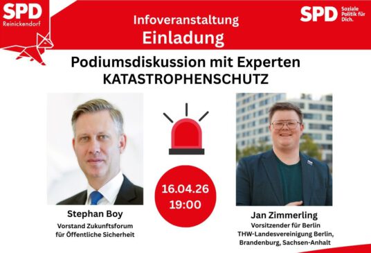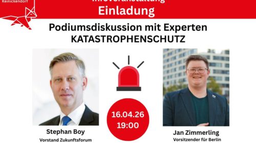 Podiumsdiskussion am Donnerstag, den 16. April 2026 um 19 Uhr in der Dorfaue in Alt-Heiligensee 67 in 13503 Berlin