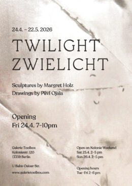 Margret Holz und Pilvi Ojala zeigen in der Galerie Toolbox in der Koloniestraße 120 in 13359 Berlin vom 24. April – 22. Mai 2026 ihre Kunstwerke in einem finnisch-deutscher Projektraum.
