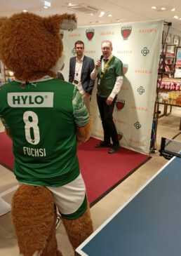 Draußen war Regen, aber in der GALERIA ging die „Post“ ab. Das Aushängeschild der Füchse, der Handball, ist heutzutage eine Indoorsportart – es passte alles. Der Start einer ganz besonderen Kooperation heute noch im Erdgeschoß, aber demnächst in der Sportabteilung im 1. OG bei GALERIA. Er gab fast alles, die Füchse betreffend, zu kaufen, zu staunen, zu gewinnen und auch Tischtennis zu spielen.