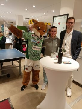 Um dem Start gebührend anzufeuern, fand für alle Kunden und handballbegeisterte Fans neben dem Ausschank von Sportgetränken, eine Autogrammstunde mit Tim Freihöfer und „Fuchsi“ statt!