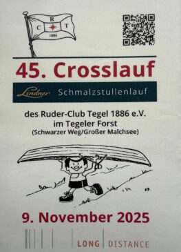 Der Crosslauf im Tegeler Forst ist mit über 700 Finishern eine feste Größe im Berliner Laufsportkalender, diesmal zum 45. Mal am 09. November ab 09 Uhr. Start und Ziel befinden sich am Schwarzen Weg direkt am Tegeler See an der Malche. Es werden verschiedene Strecken angeboten. Anschließend im Ziel für die Finisher gibt es Tee, Kuchen, natürlich Schmalzstullen und die begehrten Medaillen.