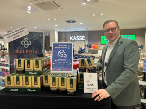 Zum Thema „Kaffeewette“ sagt Torsten Dunkelmann: „Wir nehmen bei Galeria an der Kaffeewette teil, obwohl wir ja eigentlich gar keinen Kaffee führen. Aber für diese super soziale Aktion haben wir uns kurzerhand welchen besorgt!“