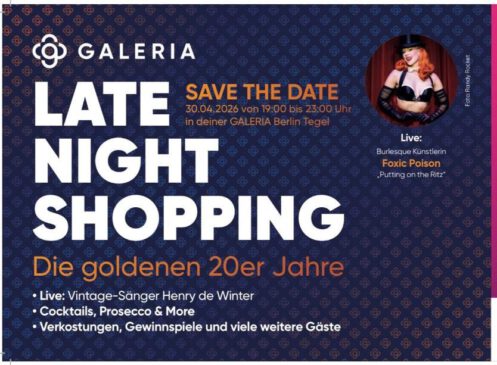 Viele Veranstaltungen sind schon ausverkauft, aber für den „Rest“ hat sich die Komödie bei Galeria in Tegel in der Gorkistraße einen „Pop up Store“ bis zum 04.04.2026 aufgebaut, der auch am 30.04. zum Late Night Shopping „zurückkehrt“.