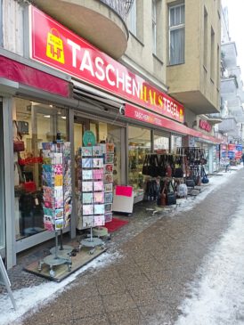 Aber es geht weiter, jedenfalls mit den Grußkarten, denn Farhad Mohamedy ist „eingezogen“. Nach dem „Unmöglichen Kaufhaus“ im alten Tegel-Center und in der Buddestraße , zuletzt als „TaschenHausTegel“, erwartet die Kunden jetzt im neuen Umfeld ein erweitertes Angebot. Hier, in der neuen Location, wird er liebevolle von Frau Soiron-Schmitt in die Grußkarten, den Standort und die Stammkundschaft „eingearbeitet“.